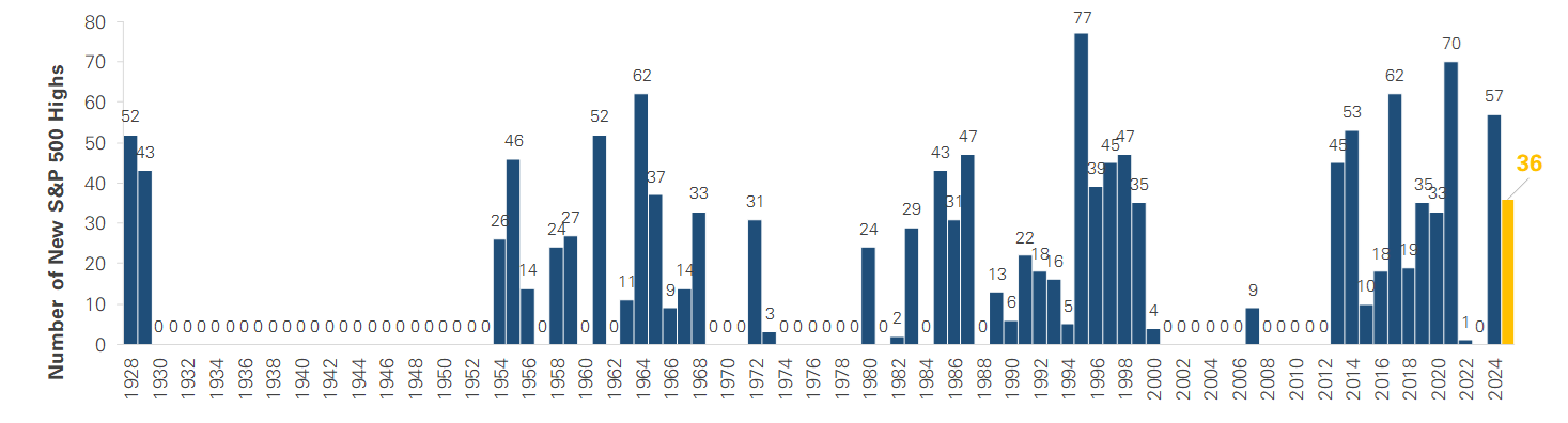 Number of New S&P 500 All-Time Highs by Calendar Year (1928-2025)